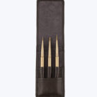 The set of three brushes come in a chic faux leather case.